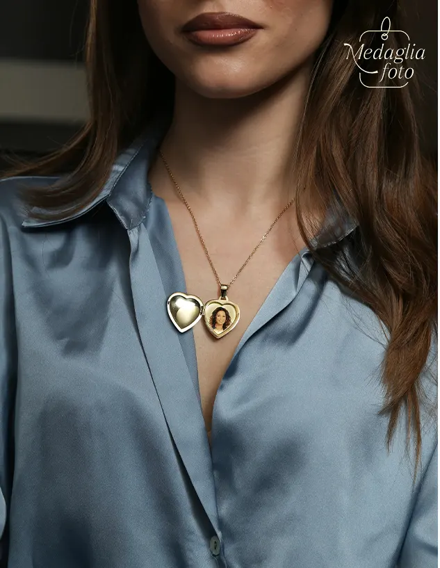 Medaglia cuore a cornice bombata in oro 18kt personalizzabile con foto incisa a punta di diamante