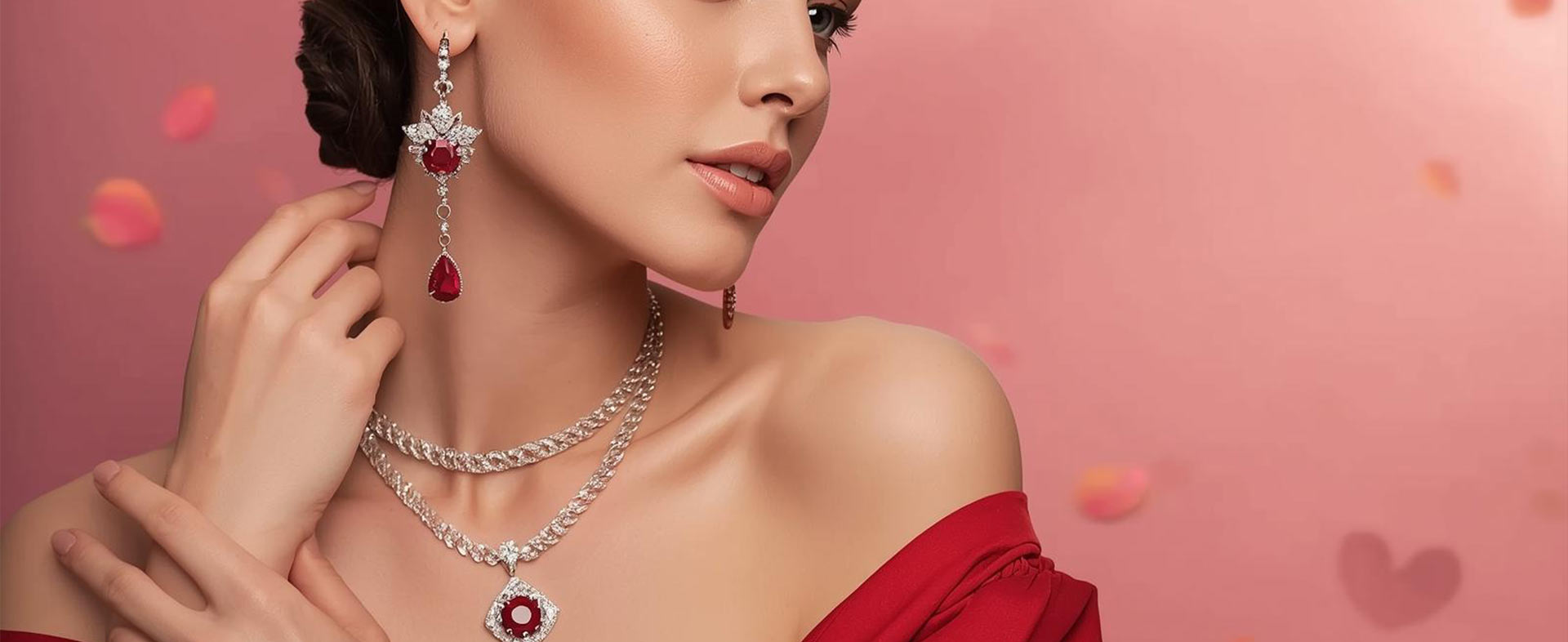 Collana con ciondolo con pietra rosso rubino in argento 925