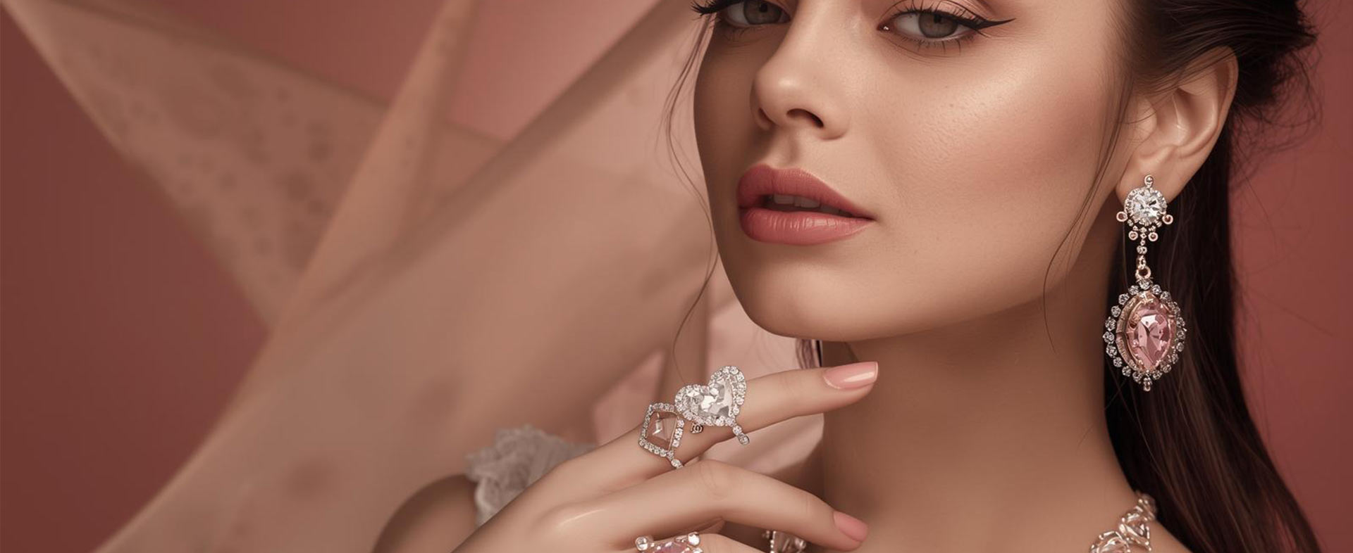 Orecchini a lobo modello rosetta in argento 925 con pietra ovale centrale rosa contornata da zirconi bianchi