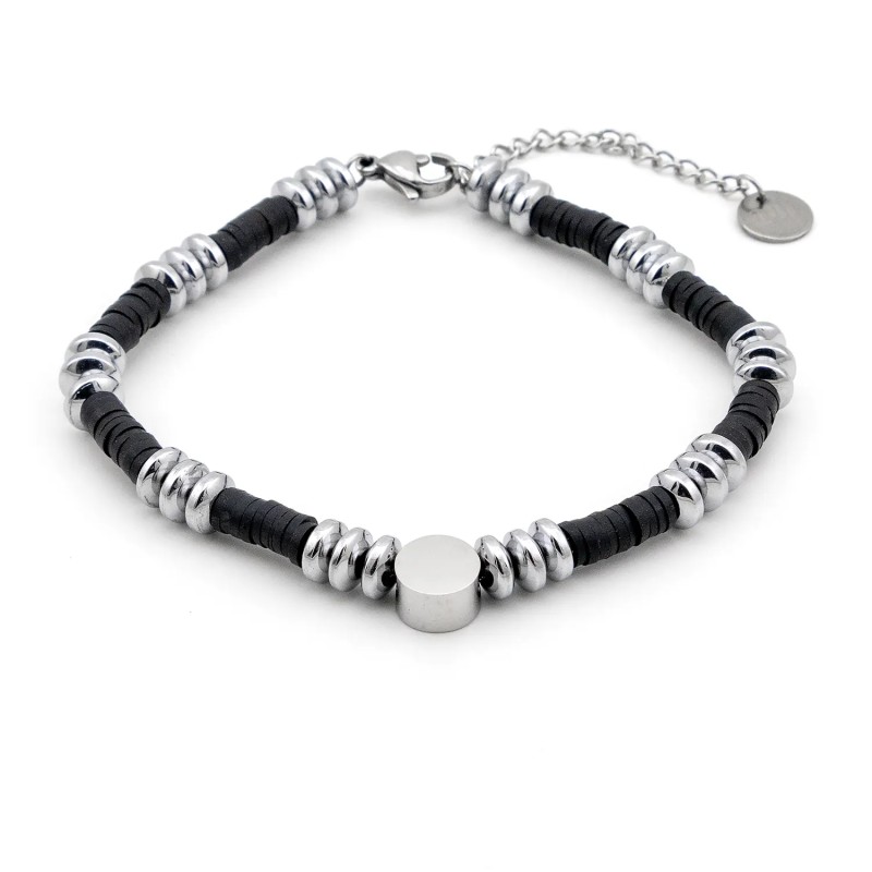 Bracciale in acciaio inossidabile nickel free e argilla polimerica di colore nero con disco piatto al centro