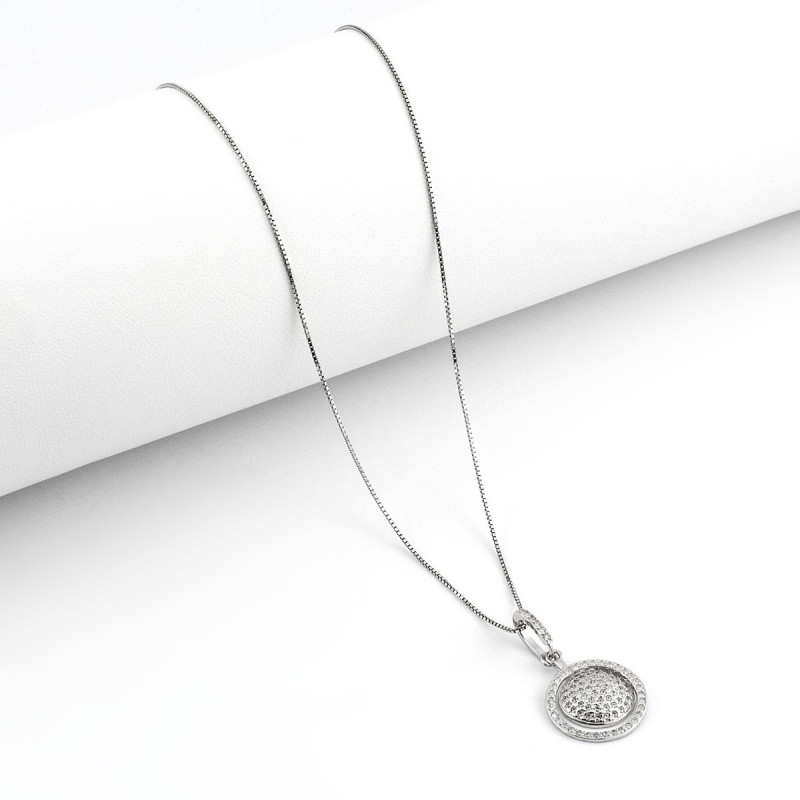 Collana in argento 925/1000 con ciondolo tondo a pavè di cristalli swarovski