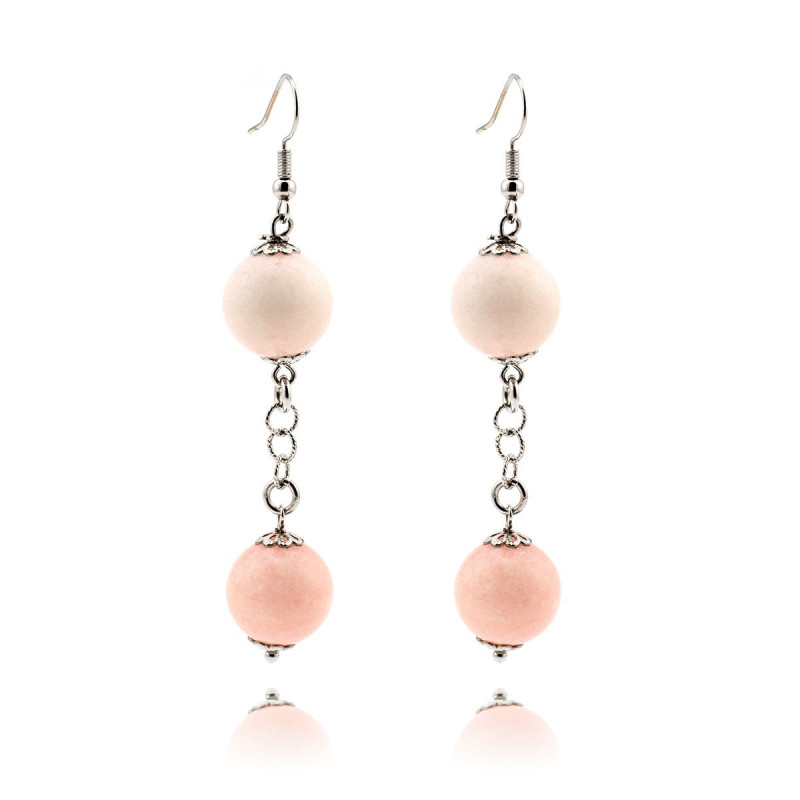 Orecchini pendenti con pietre agata rosa in bronzo galvanizzato oro bianco 24kt